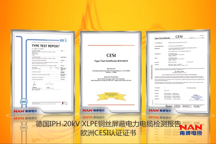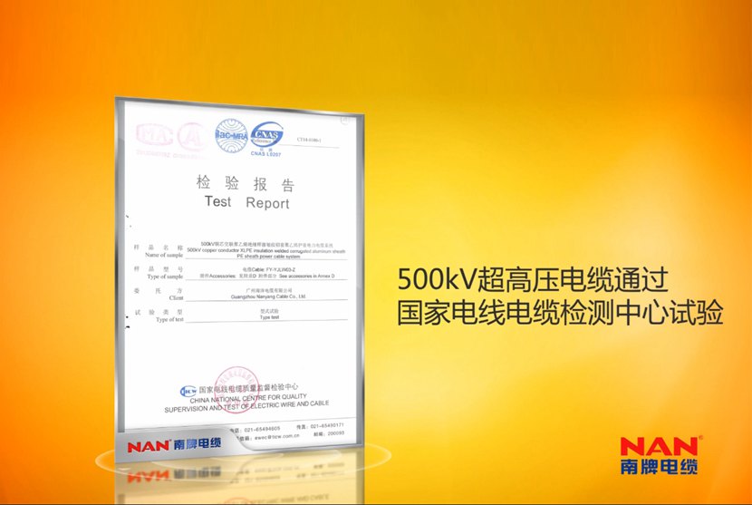 ISO質量處理體系、環境處理體系,作業健康安全處理體系、計量保證體系認證企業,具有廣東省電纜作業僅有的工程技能研討開發中心,南洋電纜具有多項專利并屢次參加國家標準及作業標準的擬定,不斷立異開發新產品。35kV及以下電纜產品取得全國工業產品出產許可證,電線產品通過我國質量認證中心CCC認證,110kV電纜通過我國電力企業聯合會產品判定,220kV電纜體系通過預判定實驗;500kV電纜體系通過型式實驗和荷蘭凱馬(KEMA)認證,加添華南地區500kV電纜產品的空白,可替代進口產品,電纜制造技能抵達世界搶先水平。